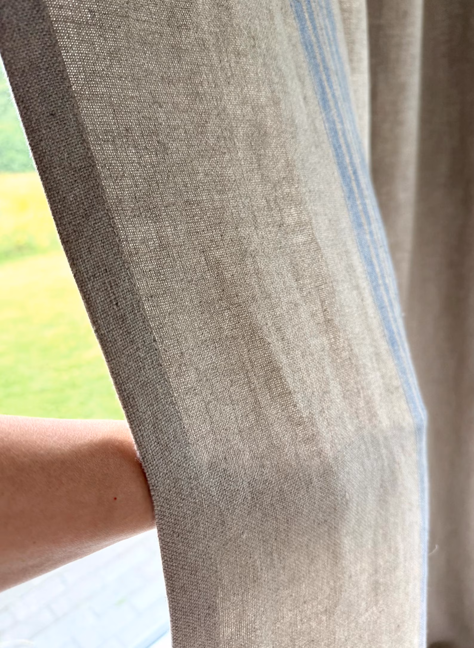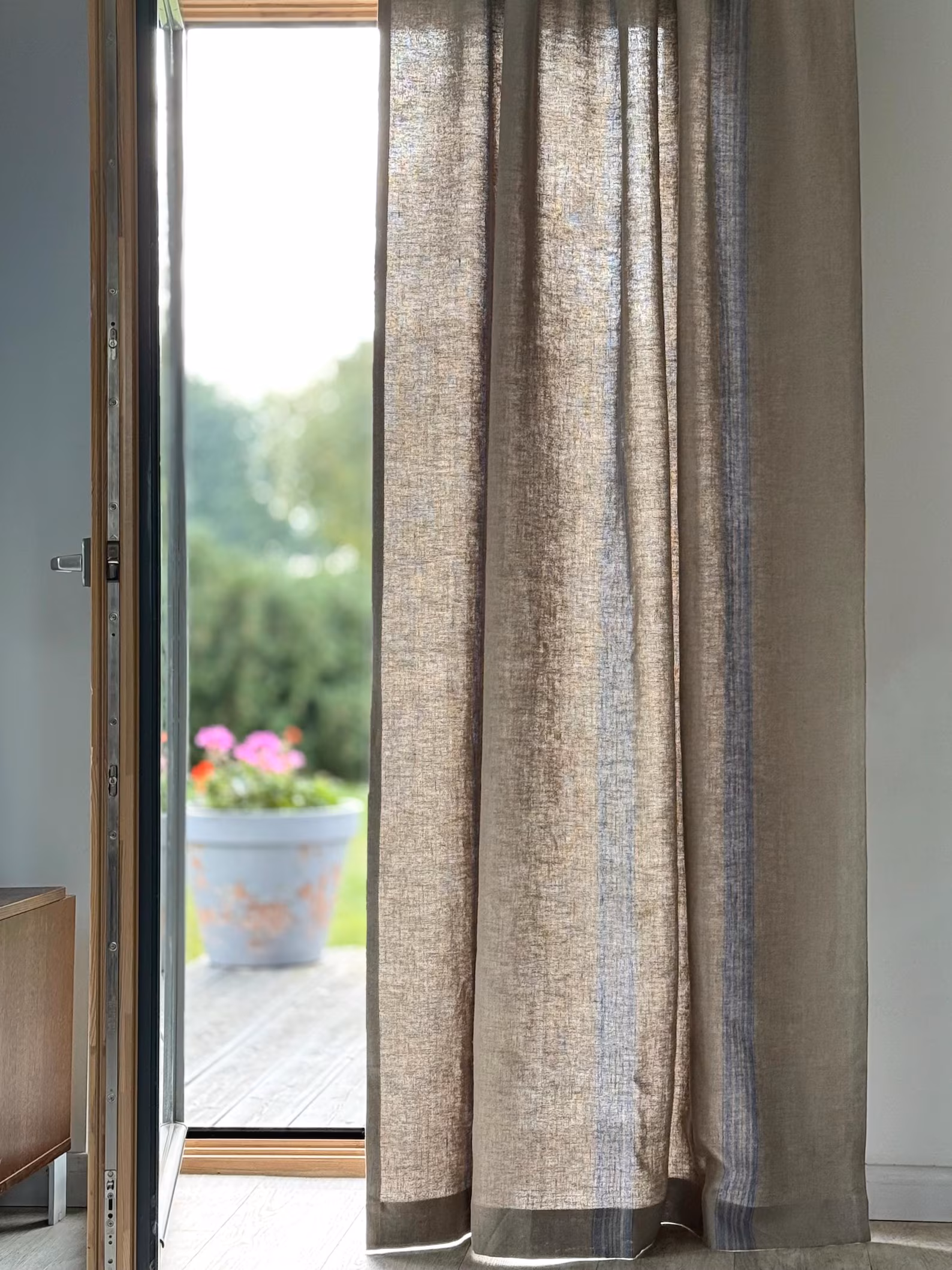 Our heavyweight linen curtains are handcrafted from 100% stonewashed European flax, offering a perfect balance between rustic texture and quiet luxury. With their natural drape and elegant stripes, they filter light softly while adding depth, warmth, and timeless charm to your space.